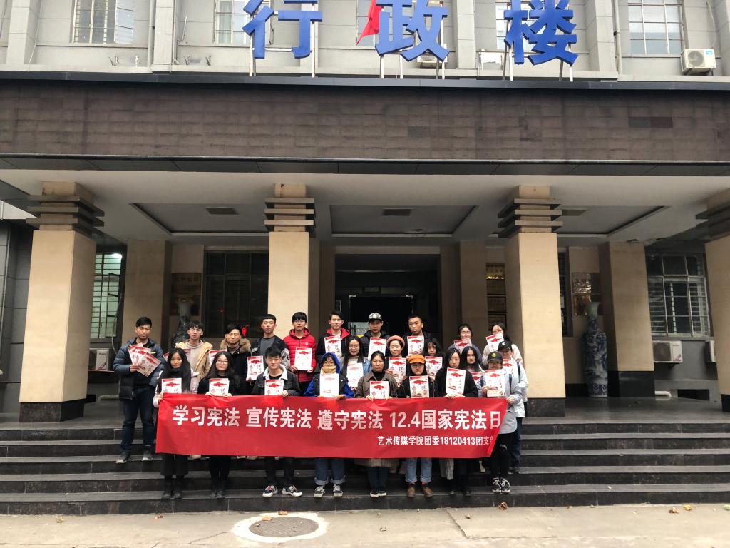 为了向同学们普及宪法教育,宣传宪法精神,深刻理解“依宪治国”和“依宪执政”的意义,12月4日在第五个“国家宪法日”到来之际,艺术与传媒学院以班级为单位,开展“国家宪法日”主题宣传活动,学院全体学生积极参与了活动。