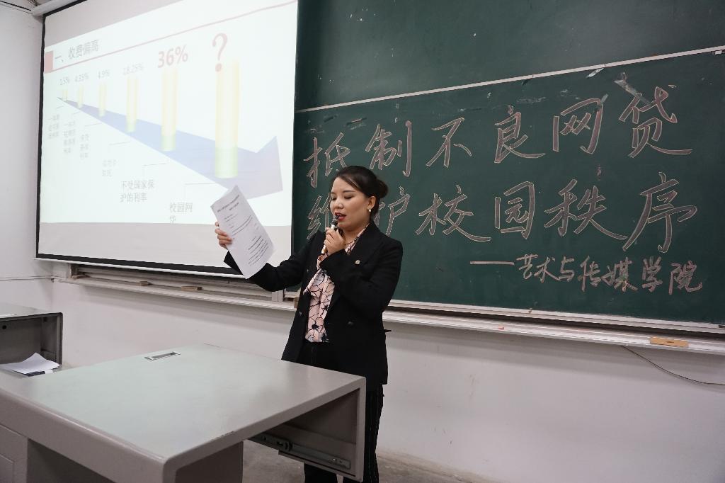 为了增强大学生的网络安全意识,抵制不良网贷,提高自我保护能力。10月25日,艺术与传媒学院携手平安银行金花路支行,在我校金花校区5F-J1举办了“抵制不良网贷维护校园秩序”主题讲座。