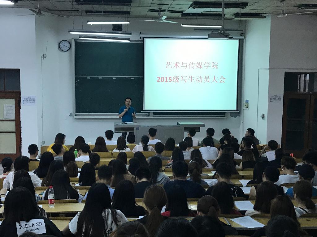 2017年5月18日下午3:30分,艺术与传媒学院在4F-J2举行了2015级学生写生动员大会,大会由辅导员杨娜娜主持,教学副院长周著以及全体带队教师出席大会,本次写生的视觉传达、产品设计专业166名学生参加了动员大会。