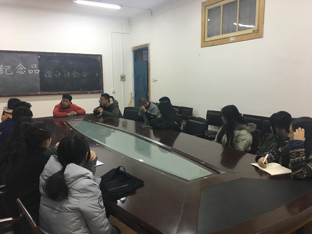 大学生艺术创作与研究中心设计部在教3-207召开了关于设计创意产品研讨会,参会的有辅导员洪涛、赵晋瑞以及全体设计部成员。