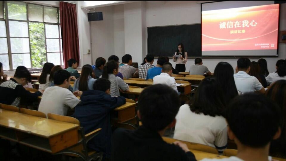 金花校区教3-324举办“诚信在我心”主题演讲比赛。体育学院团委书记杨萌老师、艺术与传媒学院团委书记杨海斌老师及辅导员张晓宾、洪涛、黄怡梅老师莅临本次活动现场,比赛由2012级辅导员助理杜俊瑶同学主持,艺术与传媒学院及体育学院部分学生代表参加此次演讲比赛。