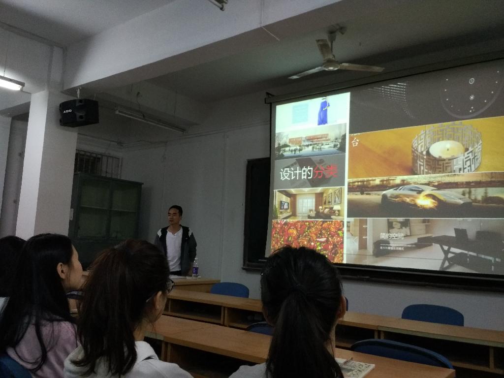 设计师邱亮通过自身在外一年多的工作经验向到场的同学们介绍实际工作与学校的课程之间的联系。并对沟通的方面重要性进行了着重强调:一个专业水平低,但是沟通能力强的人要比一个专业水平强,但沟通能力低的人有更好的发展空间。接下来强调了材料、结构、工艺、心理学等在校的课程与实际工作的关联。最后以个人的经历来鼓励同学们好好学习,毕业后如何与社会良好的对接,让自己有个成功的未来。