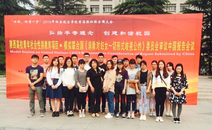 2016年4月26日,陕西高校青年社会性别教育项目——模拟联合国《消除对妇女一切形式歧视公约》委员会审议中国报告会议在西安航空学院沣惠校区学术报告厅举行,我校艺术学院20余名优秀学生代表应邀参加。