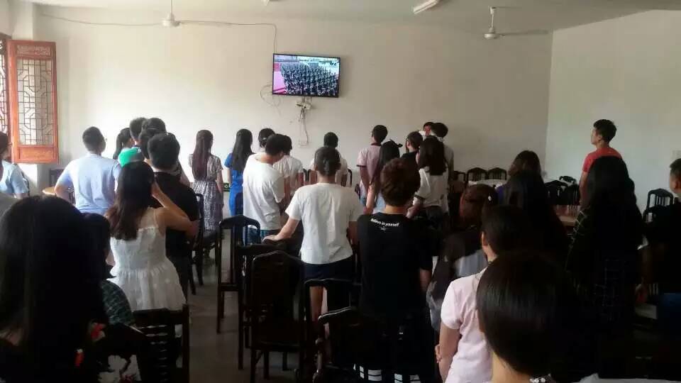 为了培养同学们的爱国精神,提高同学们的爱国意识。2015年9月3日上午9:00艺术与传媒学院2013级外出写生的6个班的学生分别在带队老师的组织下,在河南安阳石板岩镇、安徽宏村、四川成都青城山写生基地观看了中国人民抗日战争胜利70周年阅兵仪式。