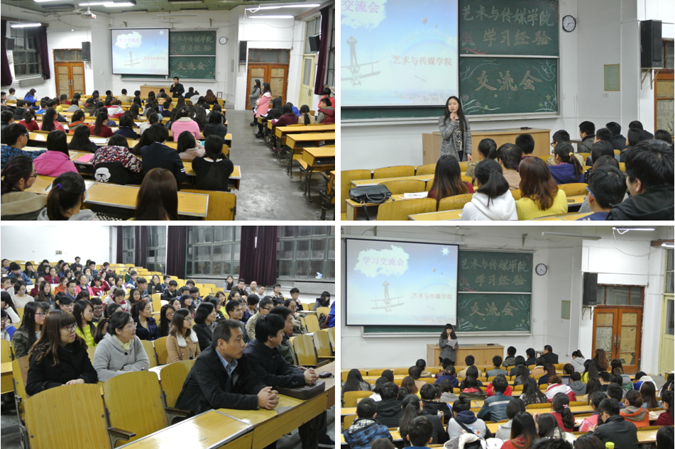 为了加强学生之间的交流,在全院营造优良学风,艺术与传媒学院于2014年11月6日19:00在我校金花校区教5楼J1教室举办了学习经验交流会。会议由学院团总支副书记张苏云同学主持,学院全体辅导员和 100多名优秀学生代表参加了交流会。