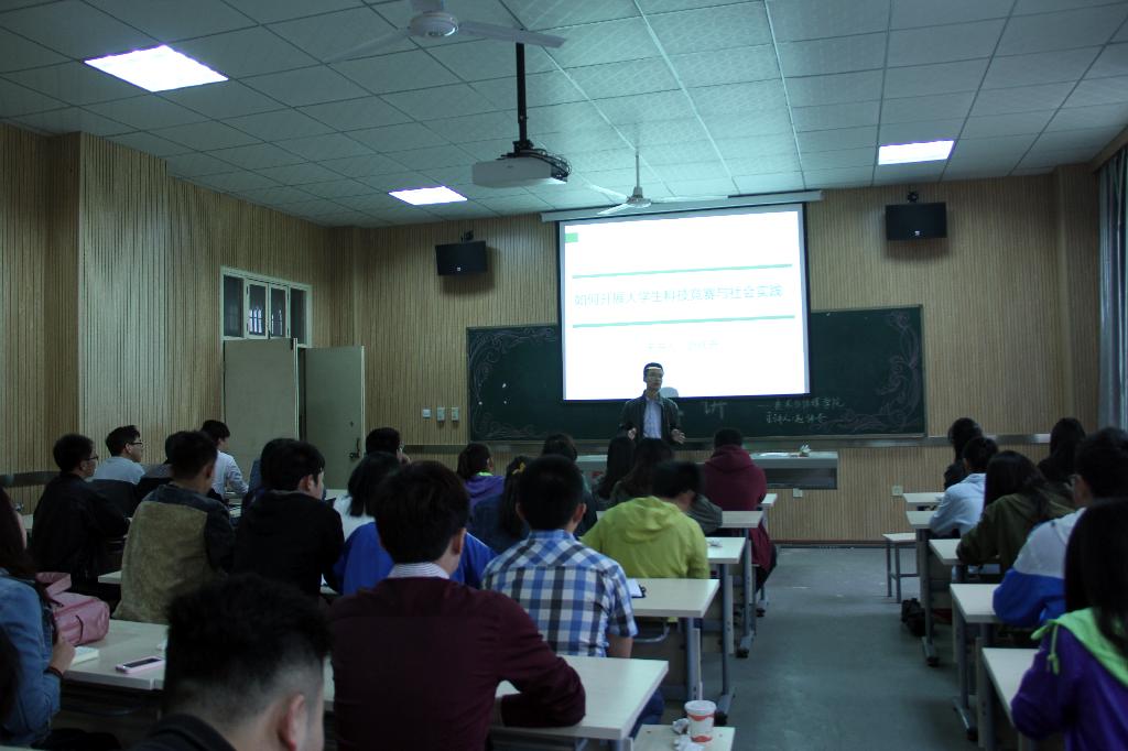 张晓宾老师首先向大家介绍了赵伟奇老师,接着赵伟奇老师结合自己的工作经历向大家介绍了我校“如何开展大学生科技竞赛”和“大学生暑期社会实践”两个方面的知识。赵老师从五个方面向大家介绍了我校大学生科技竞赛的具体内容:(1)我校大学生科技竞赛现状、(2)“挑战杯”大学生科技竞赛、(3)学校关于大学生参与科技竞赛的支持与规定、(4)如何参加大学生科技竞赛、(5)参与学生科技竞赛的作用;在社会实践方面赵伟奇老师从七个方面做了解读:(1)搞清大学生实践活动的背景、(2)确定社会实践时间,地点与形式、(3)做好社会实践前期准备、(4)说清时间目的、(5)做好社会实践内容与活动安排、(6)强调注意事项、(7)做好经费预算。讲座最后,赵老师向色情游戏