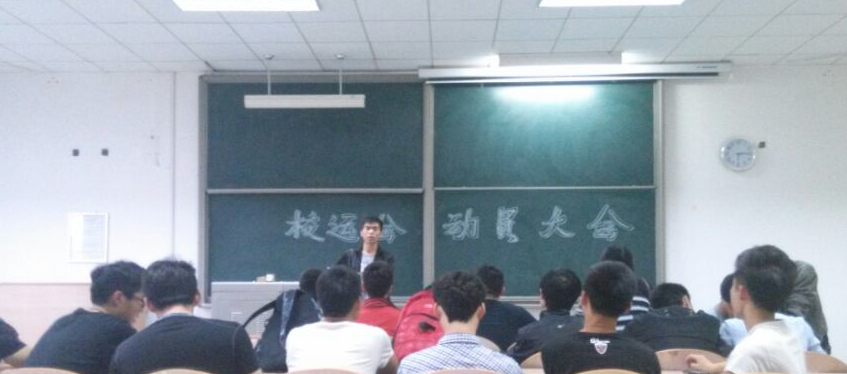 12级、13级各班班长、体育委员召开“校运动会动员大会”,会议由学生会体育部部长林安龙主持。