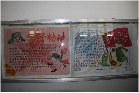 还组织以班为单位“我身边的雷锋”为主题,制作橱窗板报。学生干部充分发挥主动性,积极带领同学们完成了一幅幅意义深刻的橱窗板报,主题围绕同学们在生活中向雷锋学习、默默付出的故事。内容丰富,图文并茂,版面生动活泼,融时代性、知识性、教育性于一体,为体现学生综合能力提供了一个良好的展示平台。