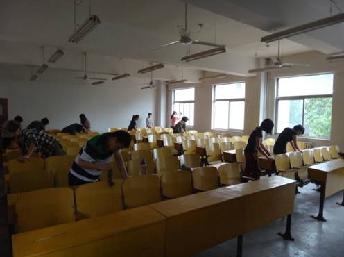 受助学生的感恩诚信教育,给同学们营造良好的学习环境,艺术与传媒学院金花、未央校区受助学生于2012年5月21日中午在金花校区教6楼4层以及未央校区教C楼4层教室开展了清除桌面污垢和教室卫生的义务劳动。