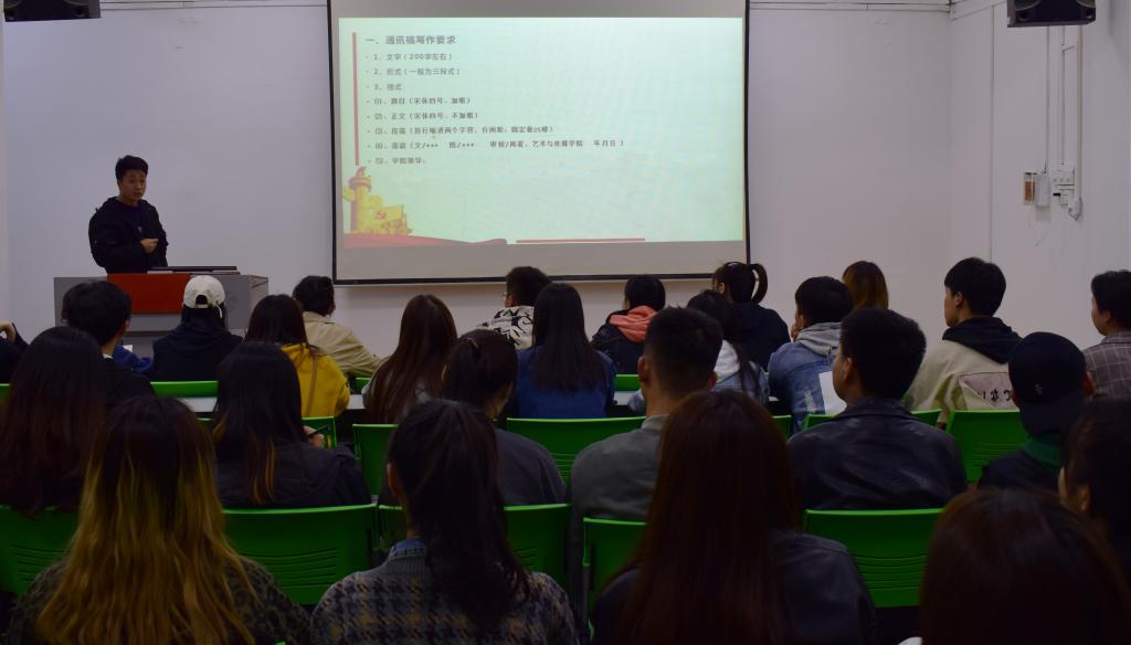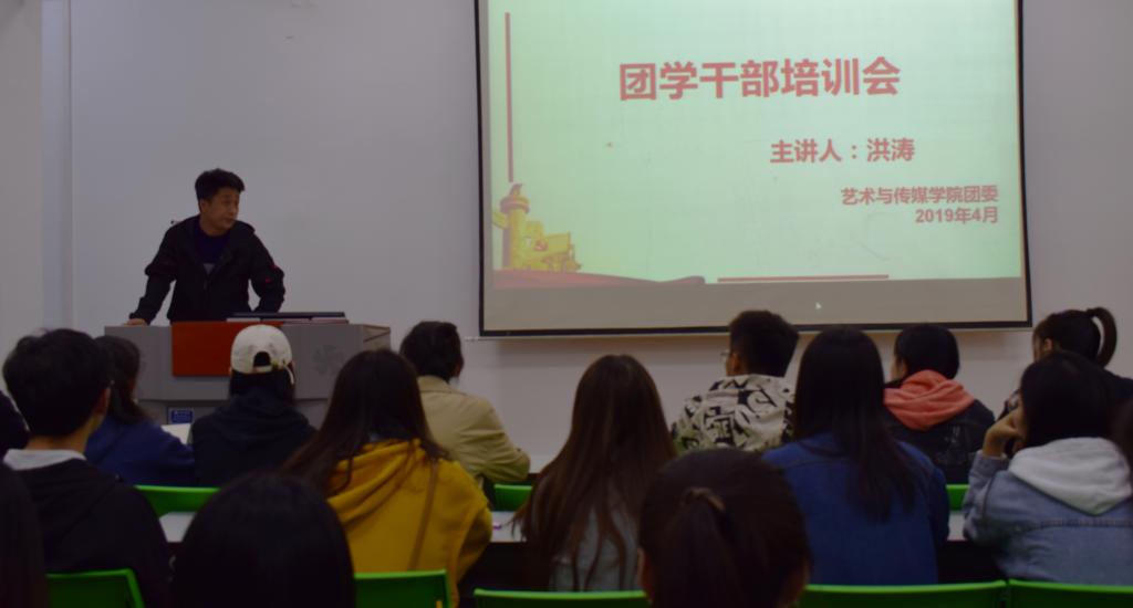 团学干部工作的积极性和热情,提升理论素养和文字稿件撰写的基本能力。2019年4月30日,艺术与传媒学院团委举办团学干部培训会,学院全体团学干部参加了此次培训会,培训由学院团委书记洪涛老师主讲。
