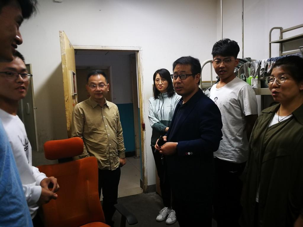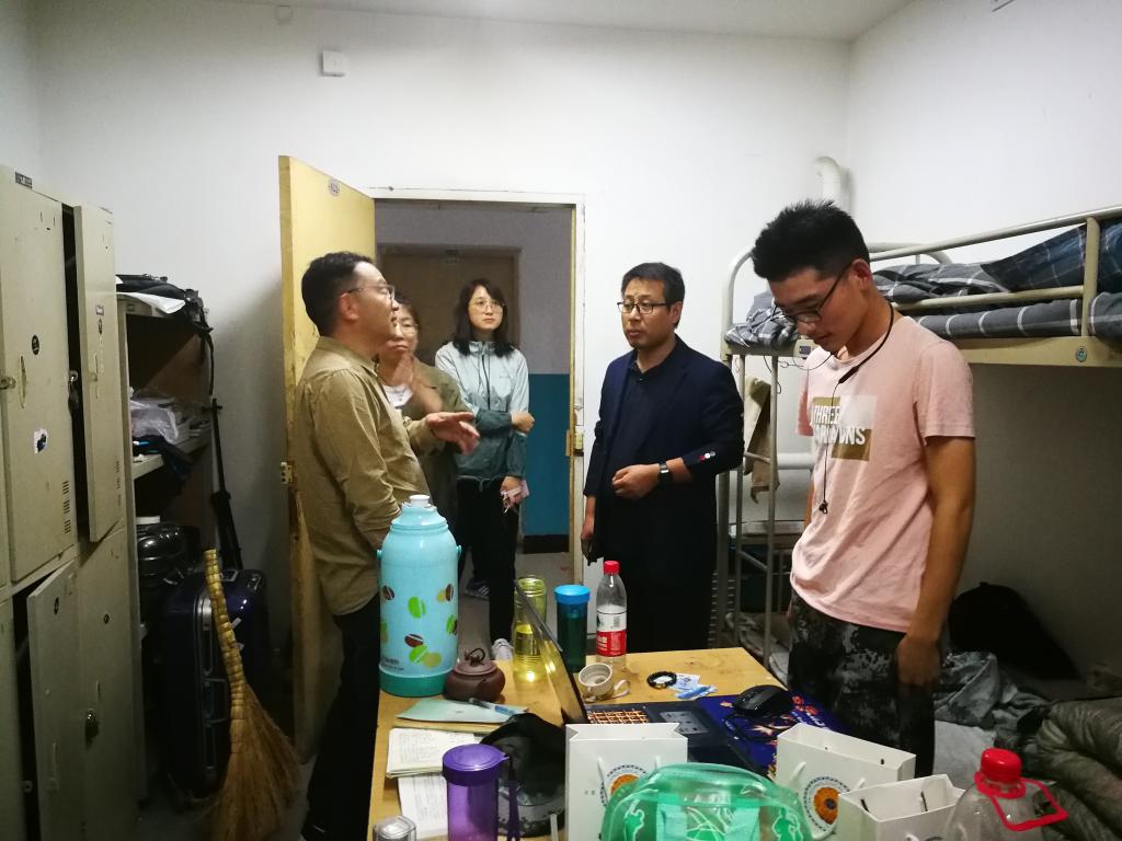9月12日晚,学院党委书记周著带领全体辅导员走访学生宿舍,了解学生住宿和军训情况,并再次送上节日的祝福,叮嘱同学们注意个人卫生、养成良好的作息习惯,尽快适应大学学习环境。