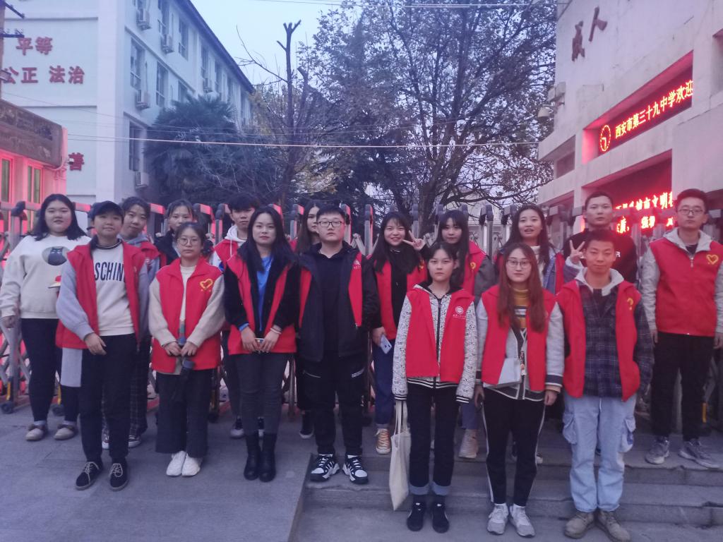 志愿者服务站在岳天鸽的带领下,前往西安市第39中学进行一对一帮扶交接仪式,志愿者服务站全体志愿者参加了此次志愿交接仪式。