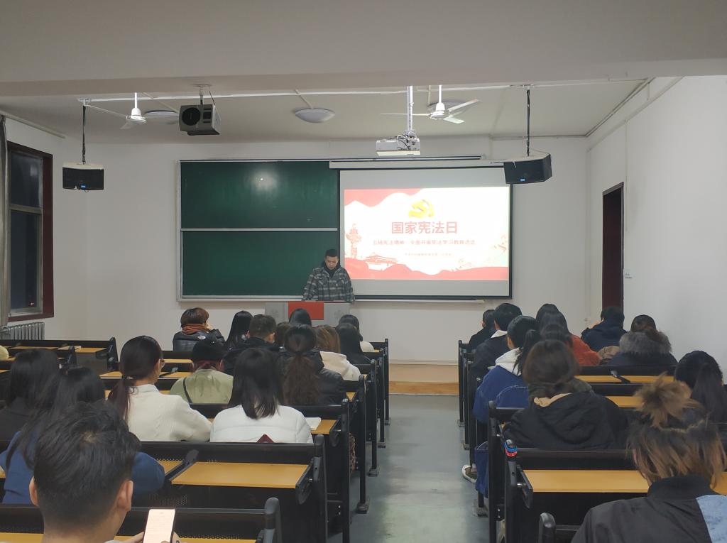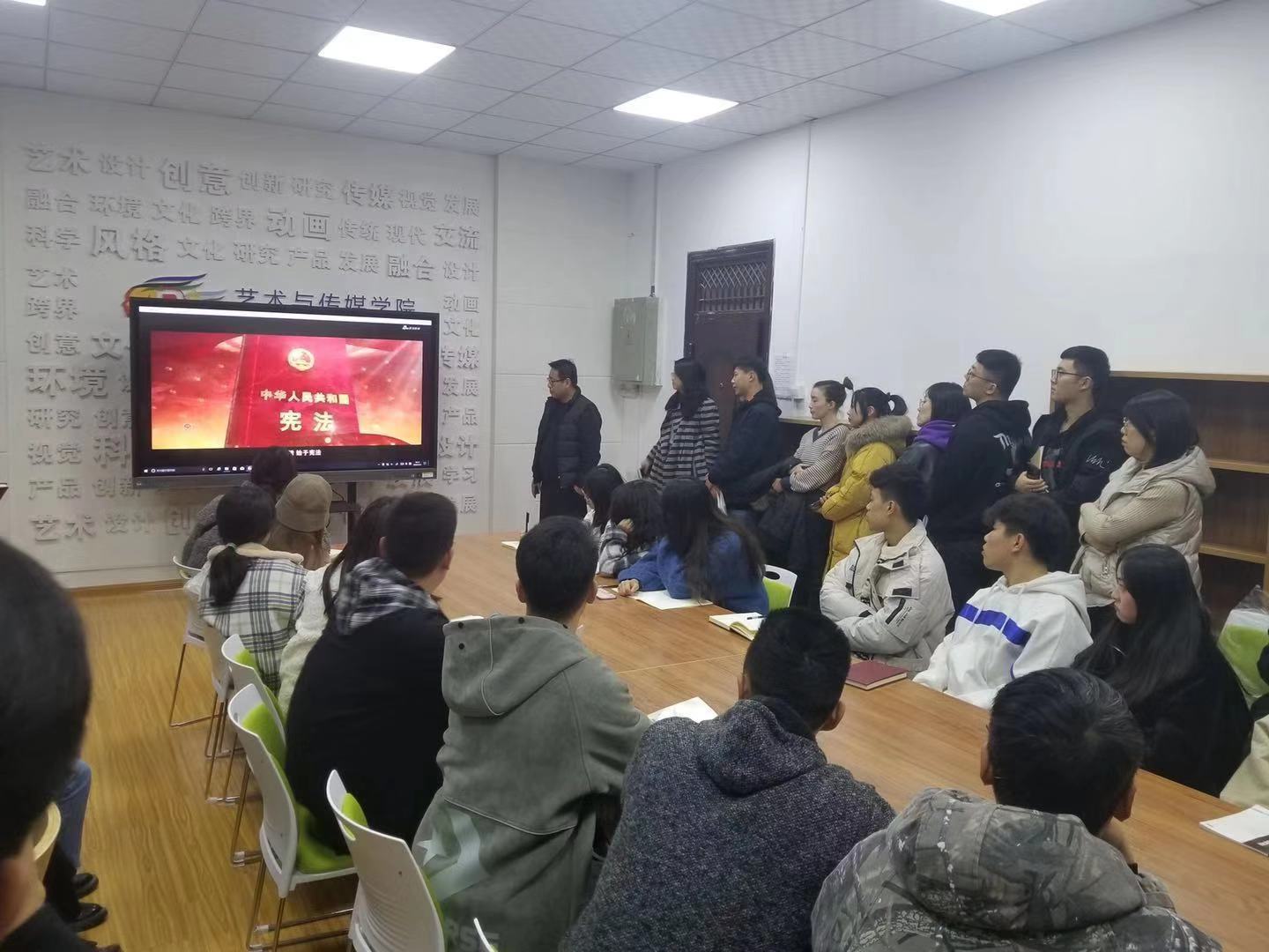 12月4日,艺术与传媒学院分别在J2-203和J2-206开展“国家宪法日”主题教育活动,学生党支部书记孙雅茹、杨娜娜、张晓宾和团委书记洪涛出席会议,学院团学干部和学生党员参加活动。