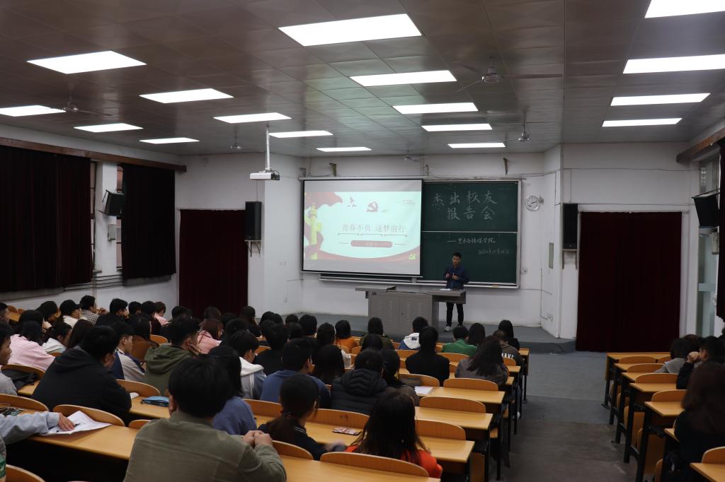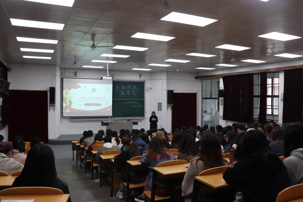 首先,孙雅茹老师向参会同学介绍了2019届杰出校友石张宁的履历;随后艺术与传媒学院党委书记周著老师从理想和担当两个层面对参会学生提出要求,他说:“在座的90、00后有梦想,有才华,你们要像石张宁同志学习,在校立志,毕业后选择建设美丽的祖国边疆,带着家人的叮嘱,老师的期盼,未来的使命扬帆起航”。随后,2019届毕业生石张宁以“青春不负 逐梦前行”为题做了报告。石张宁以追溯的形式讲述自己在校学习及生活的成长故事以及一年来的工作经历,最后,石张宁用自己在边疆的工作、生活经历向学弟学妹们提出了殷切希望,勉励同学们努力拼搏。