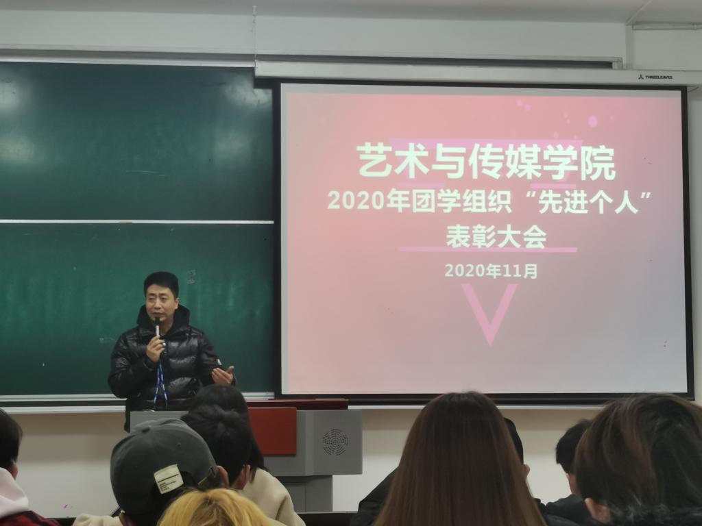 2020年11月30日,艺术与传媒学院团学组织“先进个人”表彰大会在教2-207教室召开。会议由团委刘丹主持,学院辅导员孙雅茹老师、黄怡梅老师、学院团委书记洪涛老师出席会议,团学组织代表、受表彰人员80余人参加了此次表彰大会。
