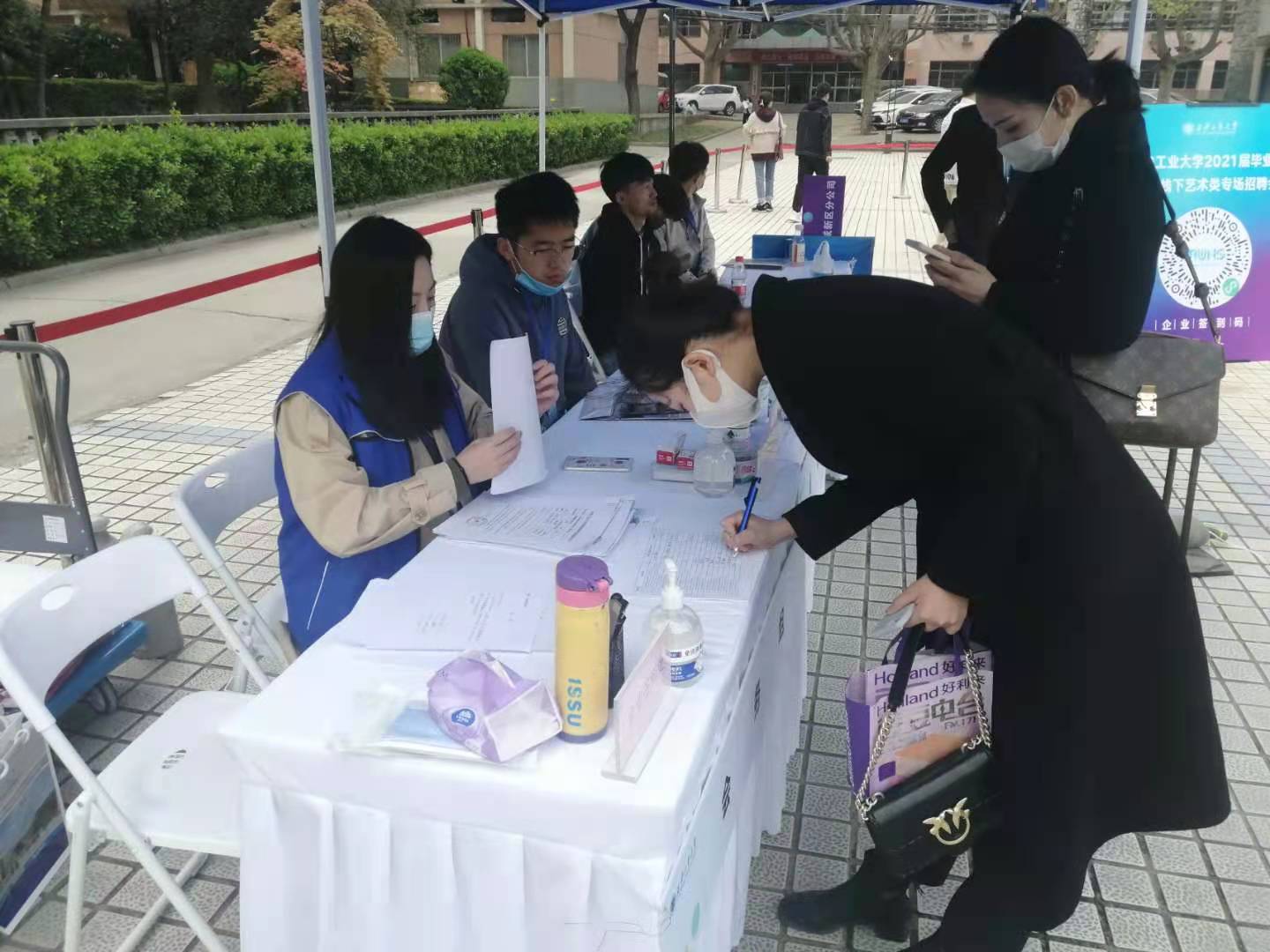 2021届毕业生春季线下艺术类专场招聘会在我校金花校区喷泉广场举办,此次招聘会共有31家知名企业参会,提供岗位200余个,参会学生200余名。