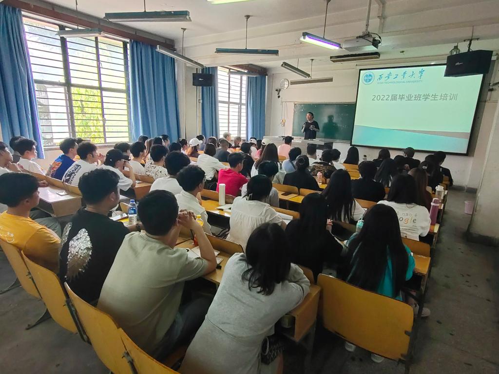 2022届毕业生树立正确的就业观和择业观,5月12日学院特邀2013届校友张云雷为2022届毕业生做就业创业指导,学院辅导员组长张晓宾主持,辅导员孙雅茹及2022届毕业班学生参加此次培训会。