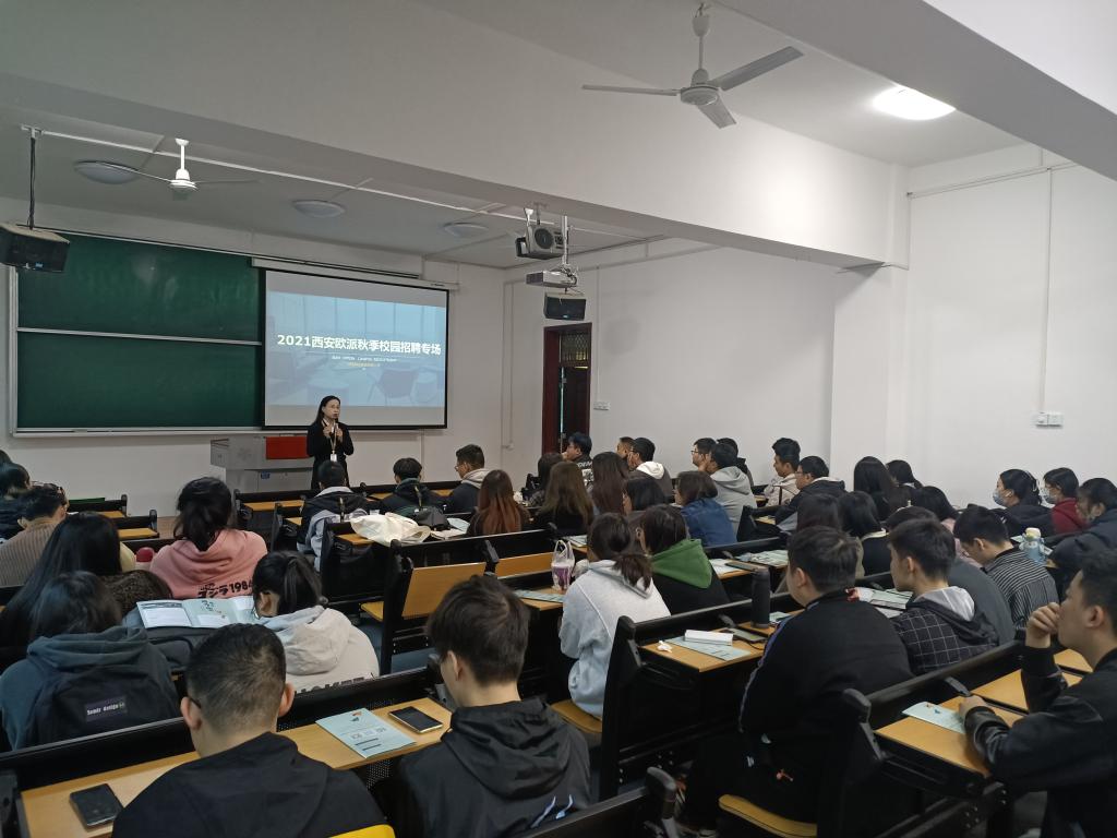 西安欧派家居HR郭晓辉首先向同学们介绍公司的色情游戏,企业口碑以及企业资质;接着欧派家居负责招聘人员也对员工福利,员工培训,员工薪资以及员工生活都做了详细介绍,并对学生关心的艺术类就业前景、专业技能和学习方法等进行深入探讨。