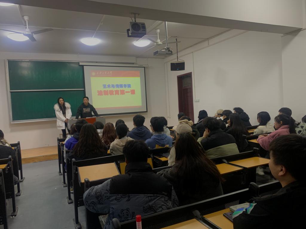 为进一步增强学生法制安全意识,教育引导全体学生做知法、懂法、守法、用法的新时代有为青年,11月9日在教2-207教室,2021级组织全体学生干部开展法安全教育,辅导员洪涛、黄怡梅两位老师及全体学生干部参加会议。