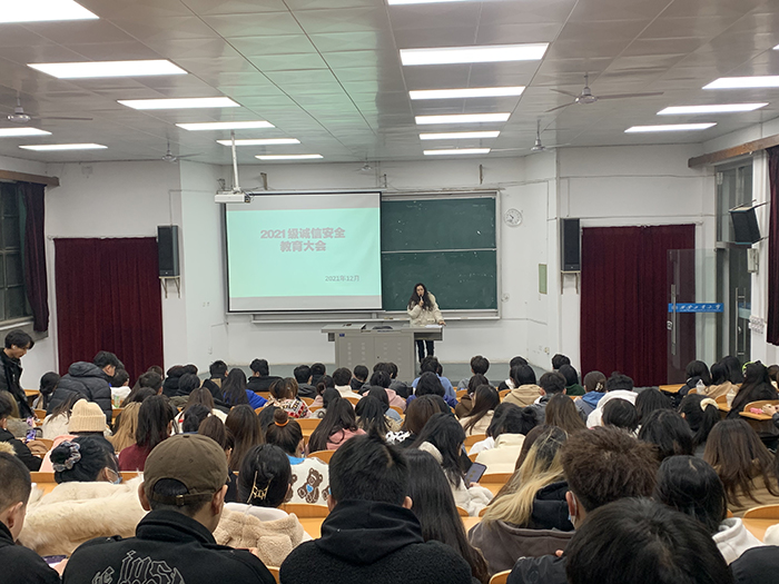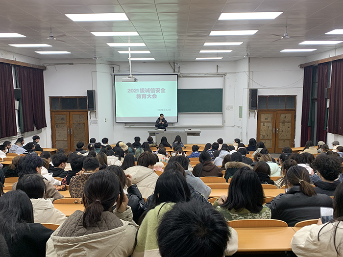12月13日,艺术与传媒学院2021级在5F-J1和5F-J2召开了诚信教育大会,会议由辅导员洪涛、黄怡梅主持,2021级全体学生参加会议。