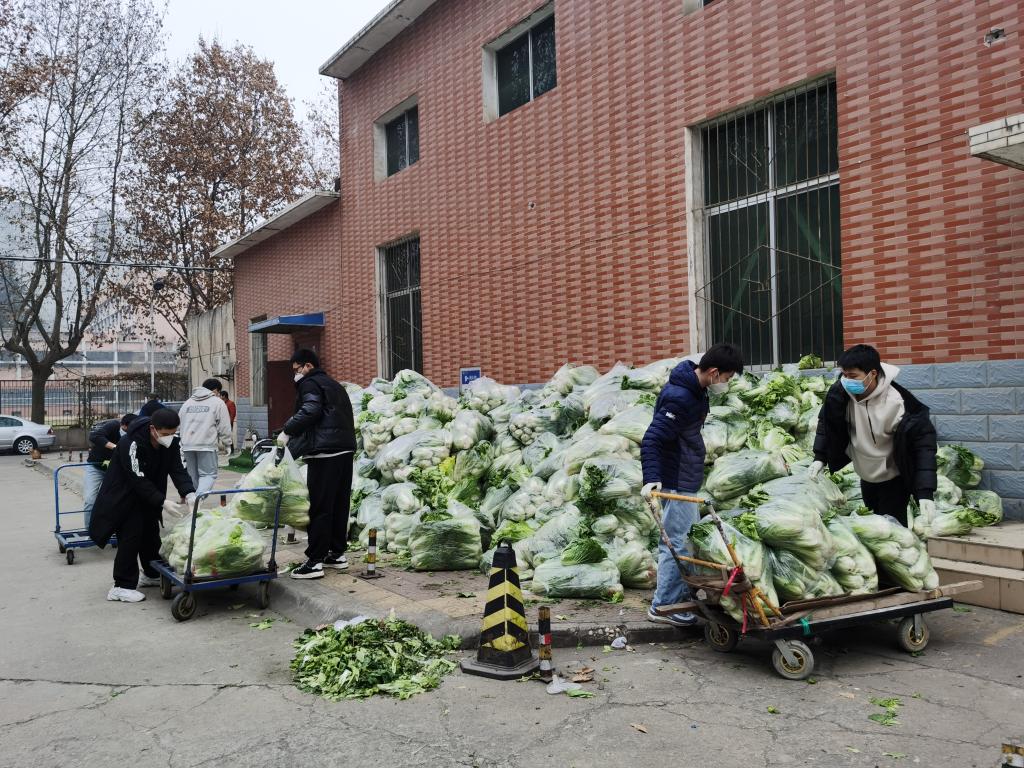 1月6日,得知四川巴中对口援助我校30吨蔬菜未能及时入库,2021级研究生班长张岳积极动员组织研究生志愿者参加蔬菜搬运活动。院党委书记周著对志愿者的主动精神表示了肯定,并要求在志愿服务过程中一定要做好个人防护,王光奎为每位研究生志愿者分发了N95口罩和手套。两位老师带领志愿者一起对蔬菜进行了搬运,志愿者的工作态度和效率受到后勤领导及工作人员的一致好评。