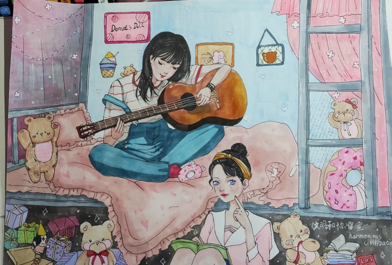 此次活动以“建设文明宿舍,活跃校园文化”为主旨,通过线上形式收集能够充分展现宿舍文化的手绘作品,来自四个年级的60个宿舍积极响应并参与此次活动。同学们充分发挥专业优势,分别通过手绘、简笔画、板报、建模、视频等方式,围绕宿舍装饰、宿舍友谊、宿舍学习、宿舍生活、宿舍安全等方面,利用一幅幅静态的图画生动地体现了同学们丰富的宿舍文化。通过两轮评比,最后评选出了一等奖一个、二等奖两个、三等奖三个及优秀奖四个。