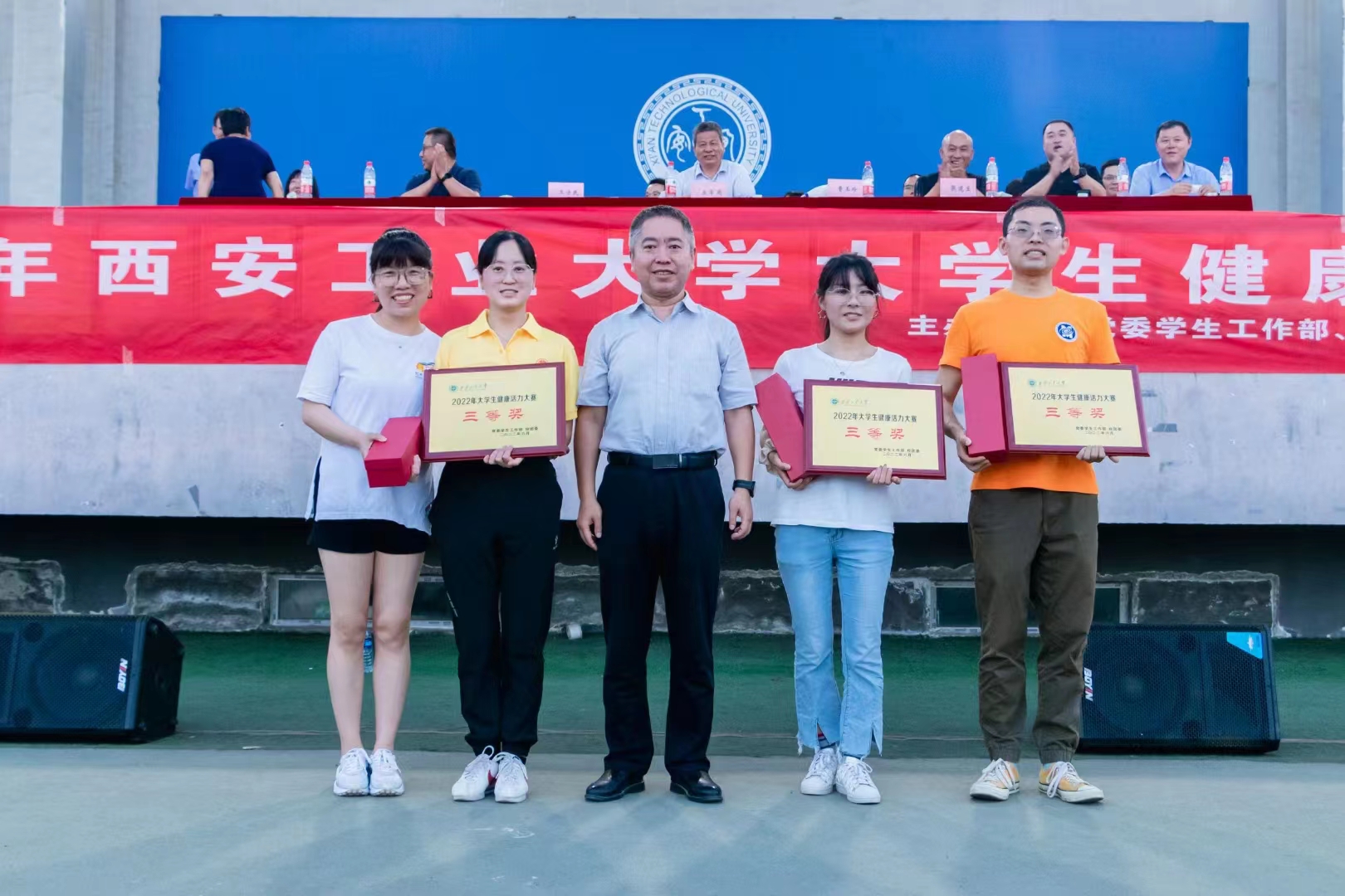 同学们顶着烈日,不畏酷暑,坚持训练了两周,不曾言弃,尽管金花校区训练场地条件有限,但同学们克服了一切困难,不曾退缩。在训练期间,学院党委副书记张晓宾亲临现场进行指导,辅导员也积极参与其中,与同学们一起训练,最终以总分排名第五的好成绩荣获“三等奖”和“优秀组织奖”。