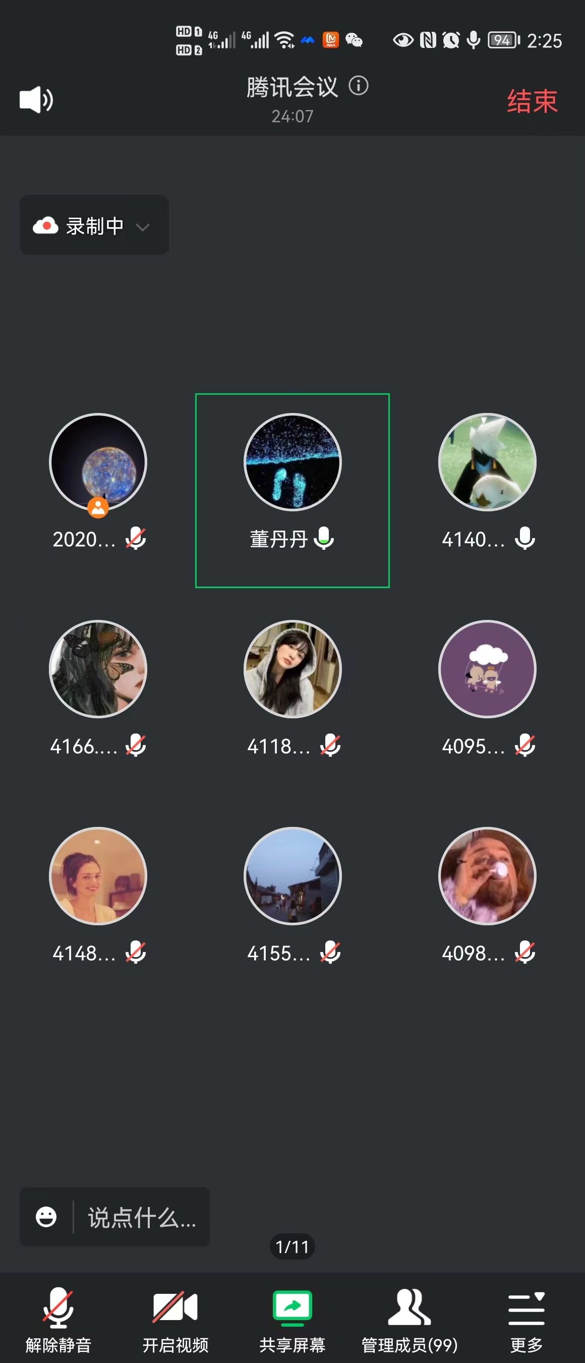 董丹丹就目前国内的疫情形势给同学们做了介绍,要求同学们严格遵守属地及学校疫情防控工作的部署,严格落实晨午检打卡制度,叮嘱同学们近期严禁前往中高风险地区,非必要不外出。同时,叮嘱同学们调整好作息,按时线上上课,并注意课堂纪律。董丹丹提醒同学们务必做好培养计划内任务的规划,核查通识选修、必修课程、第二课堂、技能学分等模块,及时查缺补漏,对于有考研计划的同学,应早日下定决心,早做准备。最后,针对近期同学们关注的选课、医保、学费、开学等问题,进行了一一解答。