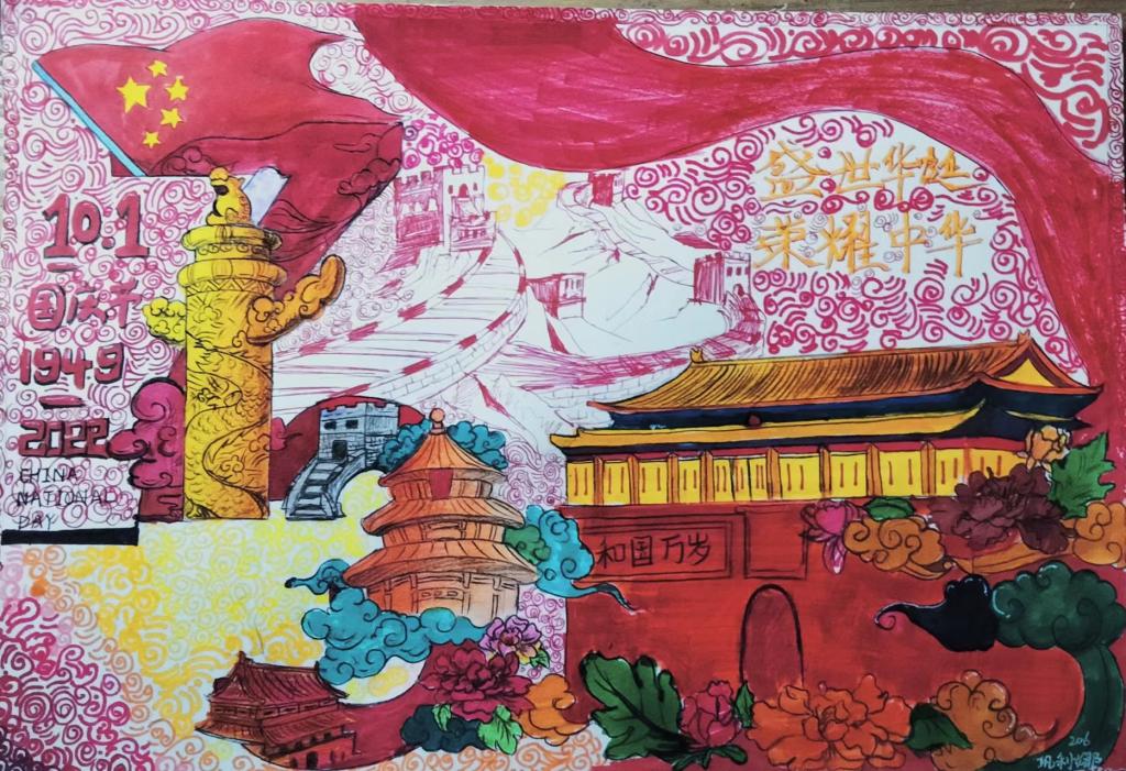 “青春献礼二十大,强国有我新征程”绘画创作,各年级学生发挥自身的专业优势展现青年色彩,学院通过激发学生的实践能力,教育引导青年学子牢记党的嘱托,将青春与祖国发展紧密联系;“我和我的祖国”合影表白,各年级学生与国旗同框合影,以实际行动送上对祖国的祝福;“表心声,祝福祖国”,各年级学生书写对祖国十年来发展的感受和体会;“重温影视经典铭记祖国历史”,学生党支部组织观看爱国主义相关影片来培养爱国意识,同时开展“守初心 担使命”歌曲传唱活动,同唱爱国主义歌曲将红色的爱国基因深深植入每一名学生的内心深处。
