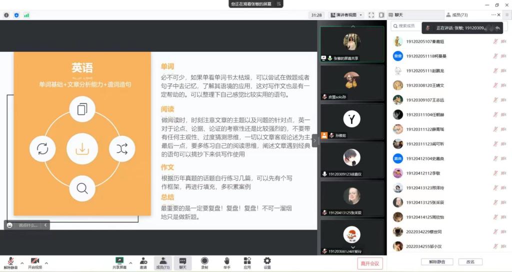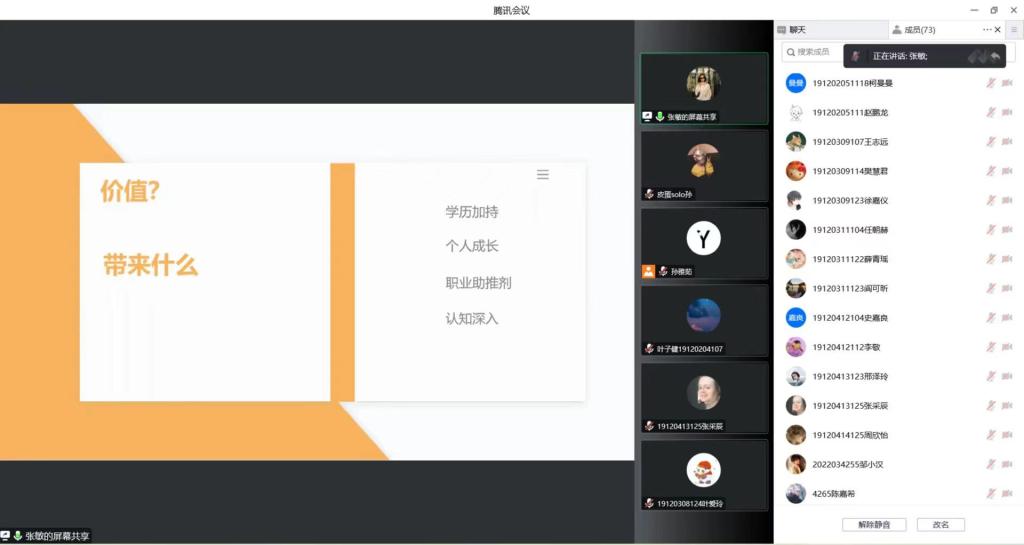 考研学生全面了解考研形势与政策,端正备考心态,科学规划备考时间,艺术与传媒学院于10月28日召开线上考研经验分享会。此次分享会邀请2022届产品设计专业毕业生张敏,2019级考研学生及其他年级有考研打算的学生聆听了分享。