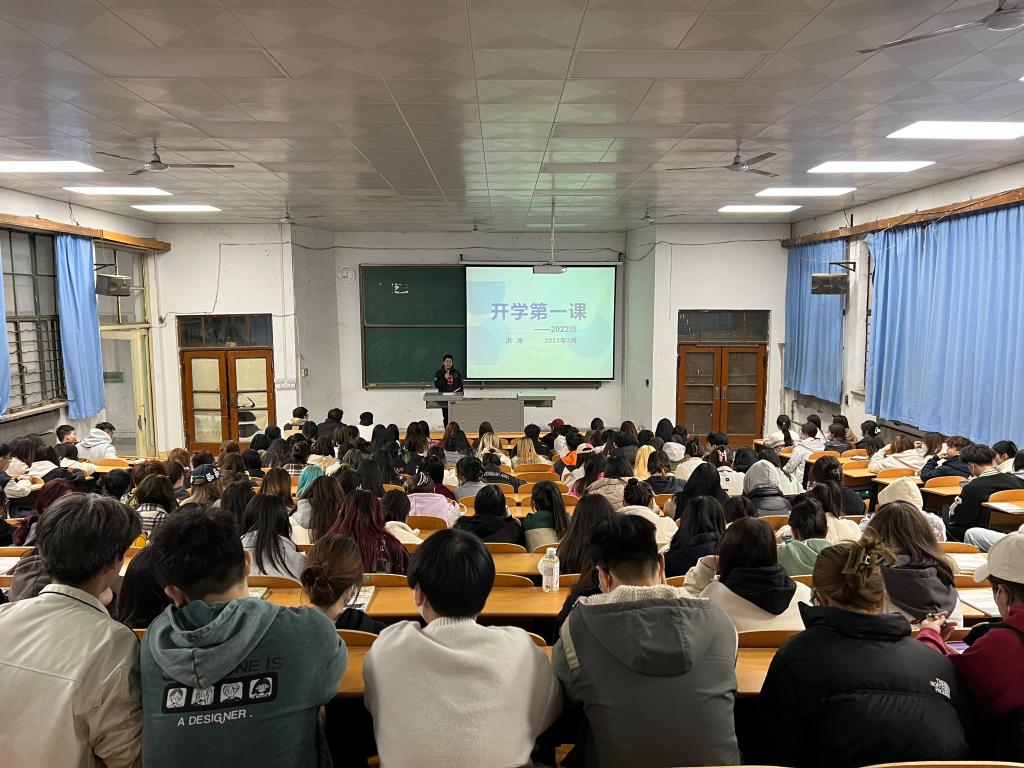 为了提升2022级新生之间的沟通、交流、使其更快的认识校园生活,适应环境,尽快进入学习状态。2023年2月28日在金花校区教4—118召开了“开学第一课”主题班会,辅导员洪涛主持会议,2022级全体学生参加此次会议。