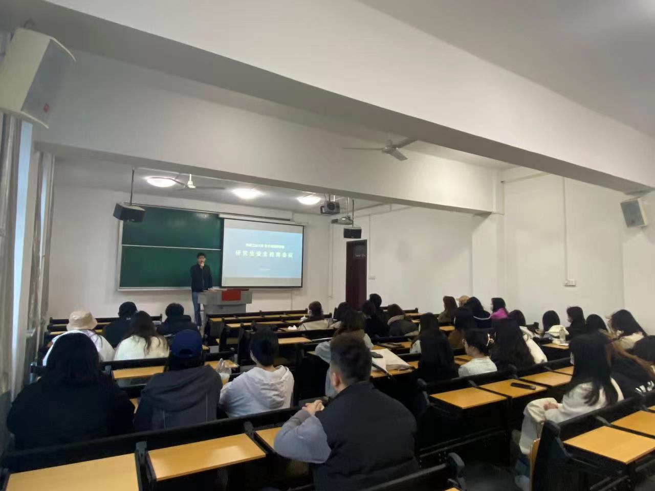 郑鸿飞从用电安全、防火安全、财产安全、交通安全、人身安全等内容,要求全体研究生要从思想认识层面高度重视安全工作,牢固树立安全意识,从源头上防范安全事故发生,保障校园安全稳定。随后详细解读了研究生专业实践安全注意事项,告诫同学们与导师保持密切联系,积极汇报自身情况,注意自身安全防护。