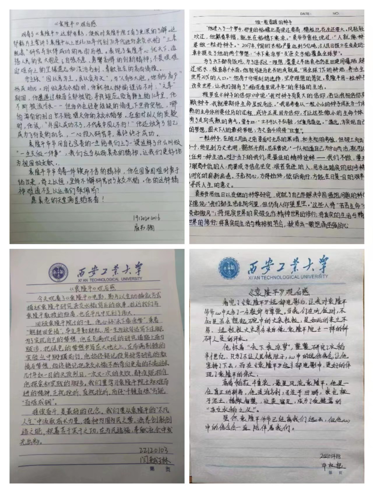 纪录片真实地再现了袁隆平在杂交水稻技术科研路上不断探索、砥砺奋进的事迹。年轻的袁隆平在经历了持续三年的灾荒后,毅然决然转向研究能解决老百姓温饱问题的水稻上。通过学习袁隆平的先进事迹,缅怀致敬其为促进中国农业科学技术创新发展所作出的贡献。活动结束,同学们纷纷表示要学习袁隆平院士热爱党、热爱祖国、热爱人民,勇于创新、朴实无华的高贵品质,把自己的人生追求同社会实践结合起来,并且树立“劳动最光荣”的观念,感受劳动创造美的真谛。