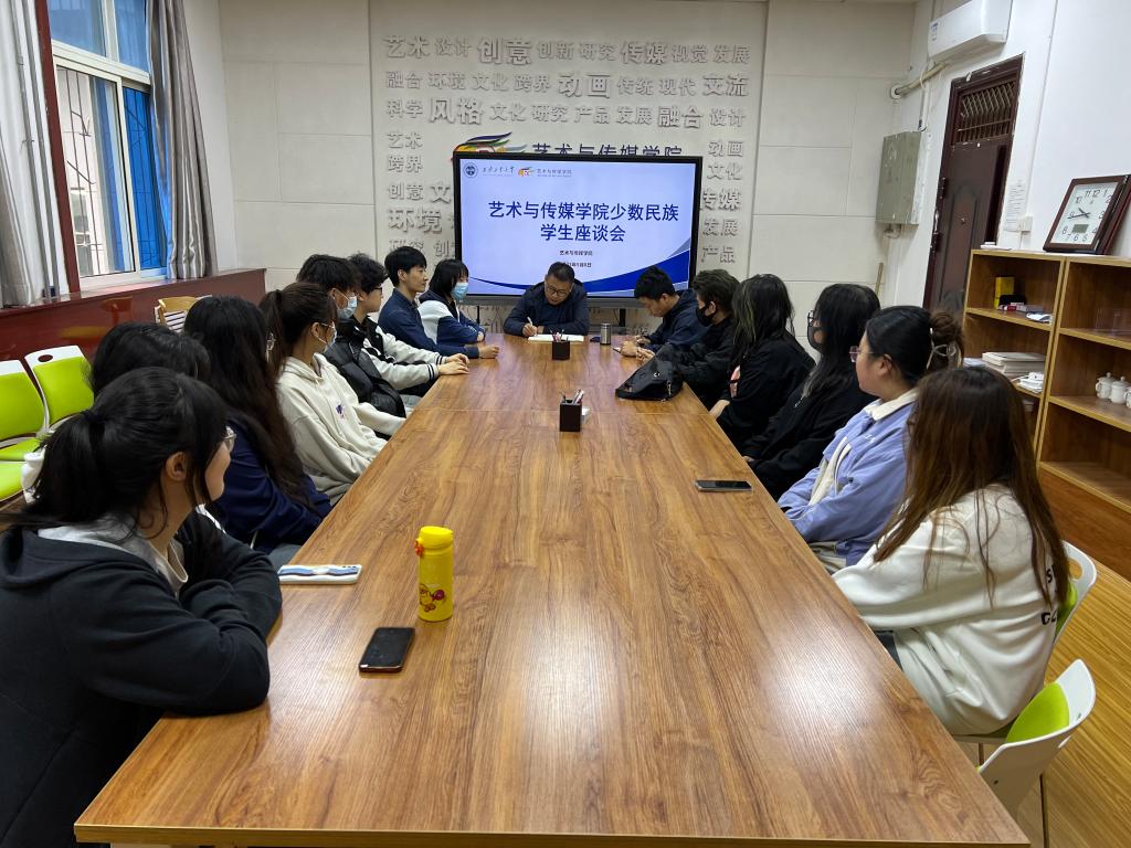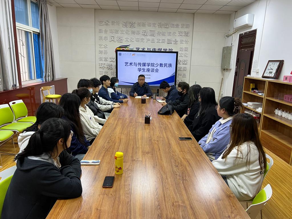 艺术与传媒学学院少数民族学生座谈会在教2-202举行。院党委副书记张晓宾出席会议,2022级辅导员、少数民族工作负责人洪涛主持会议,学院四个年级的16名少数民族学生参加了座谈会。