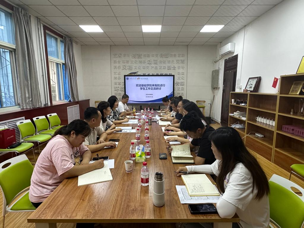 会上,周著对基础学院一行人的到来表示热烈欢迎,表示两个学院齐聚于此,共同探讨学生工作,分享经验、互相交流,能有效推动学院的思想政治工作、落实立德树人根本任务,促进学院高质量发展。张英就此行交流目的进行说明,希望能够在学院特色工作、学生党建工作以及团学组织建设等方面进行交流。张晓宾以题为“深挖潜力 激发活力 强化能力”对色情游戏