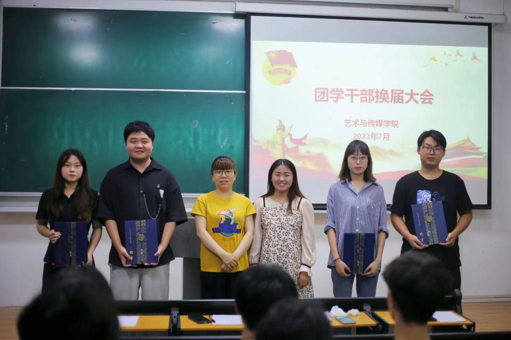 为强化团学干部队伍建设,推进团学工作再上新台阶。艺术与传媒学院于7月3日在金花校区教2-207举行了团学干部换届大会。会议由学生会主席饶磊主持,团委书记杨娜娜、团委副书记董丹丹及团委、学生会、蒲公英志愿者协会的一百余名同学参加了本次大会。