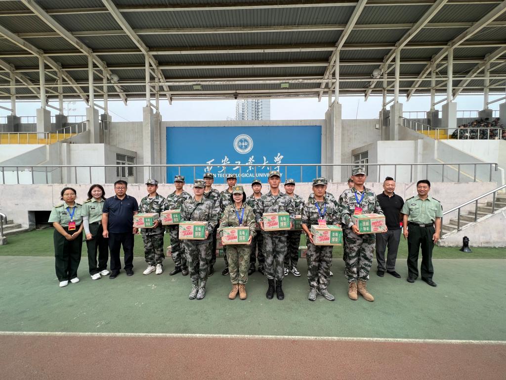 2023年8月24日上午,艺术与传媒学院院长苏胜、党委副书记张晓宾及全体辅导员慰问学院2022级参加军训的全体师生,并为大家送上慰问品。