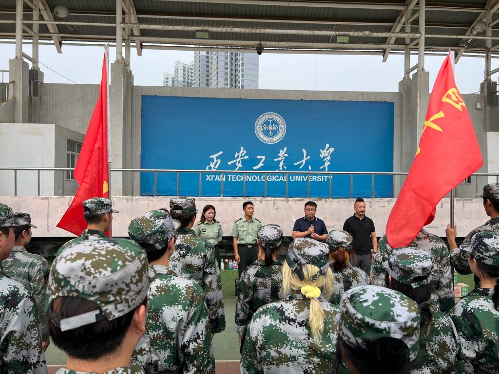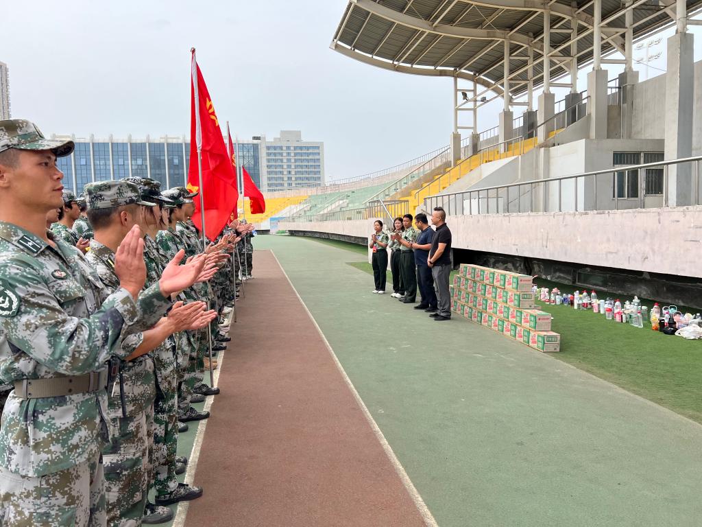 张晓宾代表学院对同学们在军训中的表现给予了肯定,对各位参训教官的辛勤付出表示感谢;张晓宾对全体参训学生提出三点希望:一是按照军训旅的安排和教官的要求,保质保量的完成训练任务;二是照顾好自己,按时作息,注意饮食,有困难及时跟指导员联系解决;三是积极践行敦德励学、知行相长的校训和传承忠诚进取、精工博艺的校风,以过硬的素质展示艺术与传媒学院学生的良好风貌。