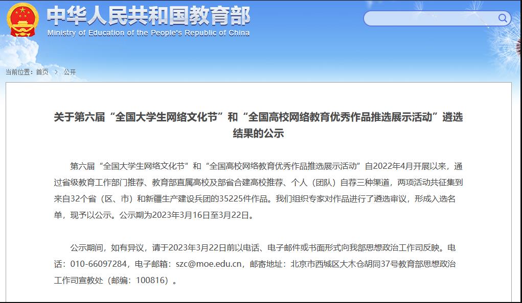 为充分发挥新媒体平台对学生思想政治工作的促进作用,推动学院公众号成为学生思政教育的有效载体,学院紧抓网络思政教育阵地,以网络思政的创新发展推动思想政治工作走深走实。自2022年6月接到比赛通知起,艺术与传媒学院组织师生积极参与第六届全国大学生网络文化节和全国高校网络教育优秀作品推选展示活动。经个人报名,学院推荐,共提交12份作品,在此次大赛中喜获2项国家级荣誉,2项省级荣誉。