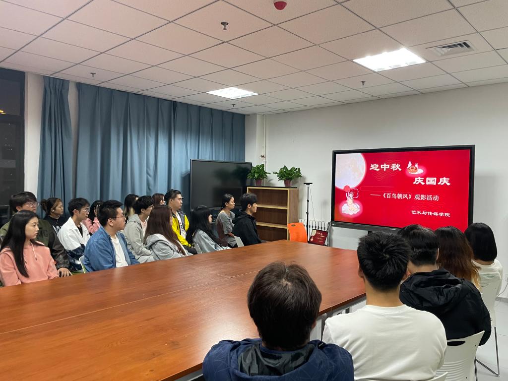 为大力弘扬中华优秀传统文化,厚植学生的爱国主义情怀,9月25日晚19:00,艺术与传媒学院组织2021级和2022级部分同学在J7-617举办“迎中秋,庆国庆”为主题的特色观影活动。