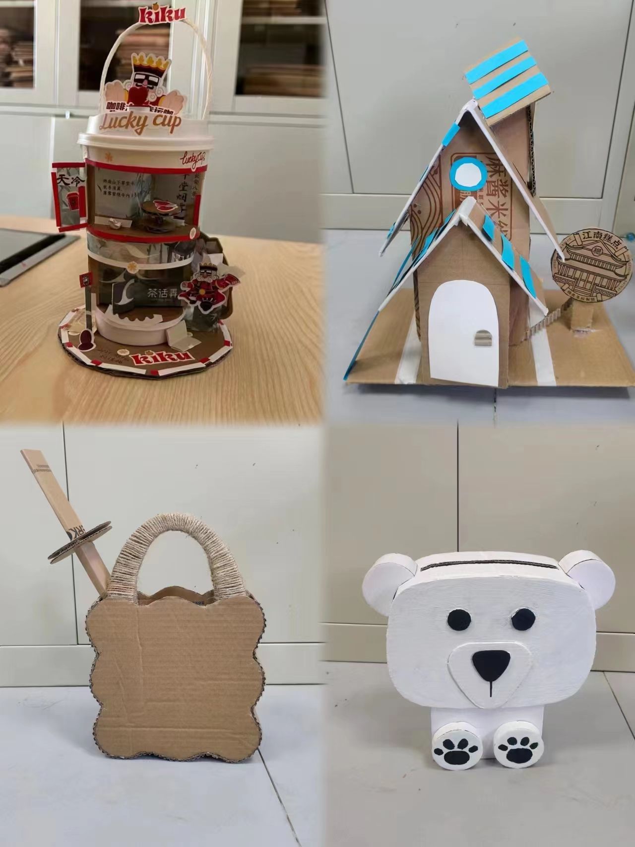 同学们充分发挥想象力,将艺术与生活结合起来,通过剪裁、折叠、绘画等手法,将原本普通的快递盒重新加工,制作成理念新颖、形象美观、设计创新的实用物件。有的选手将快递盒剪裁得宛如城市街景,让人仿佛置身于一个微缩版的都市;还有一些选手将传统文化融入自己的设计,巧妙地运用了传统文化的符号、图案或元素,如中国传统绘画、剪纸、刺绣等,通过独特的设计和装饰,将古老的传统艺术与现代快递盒结合,赋予了快递盒作品更深层次的内涵。