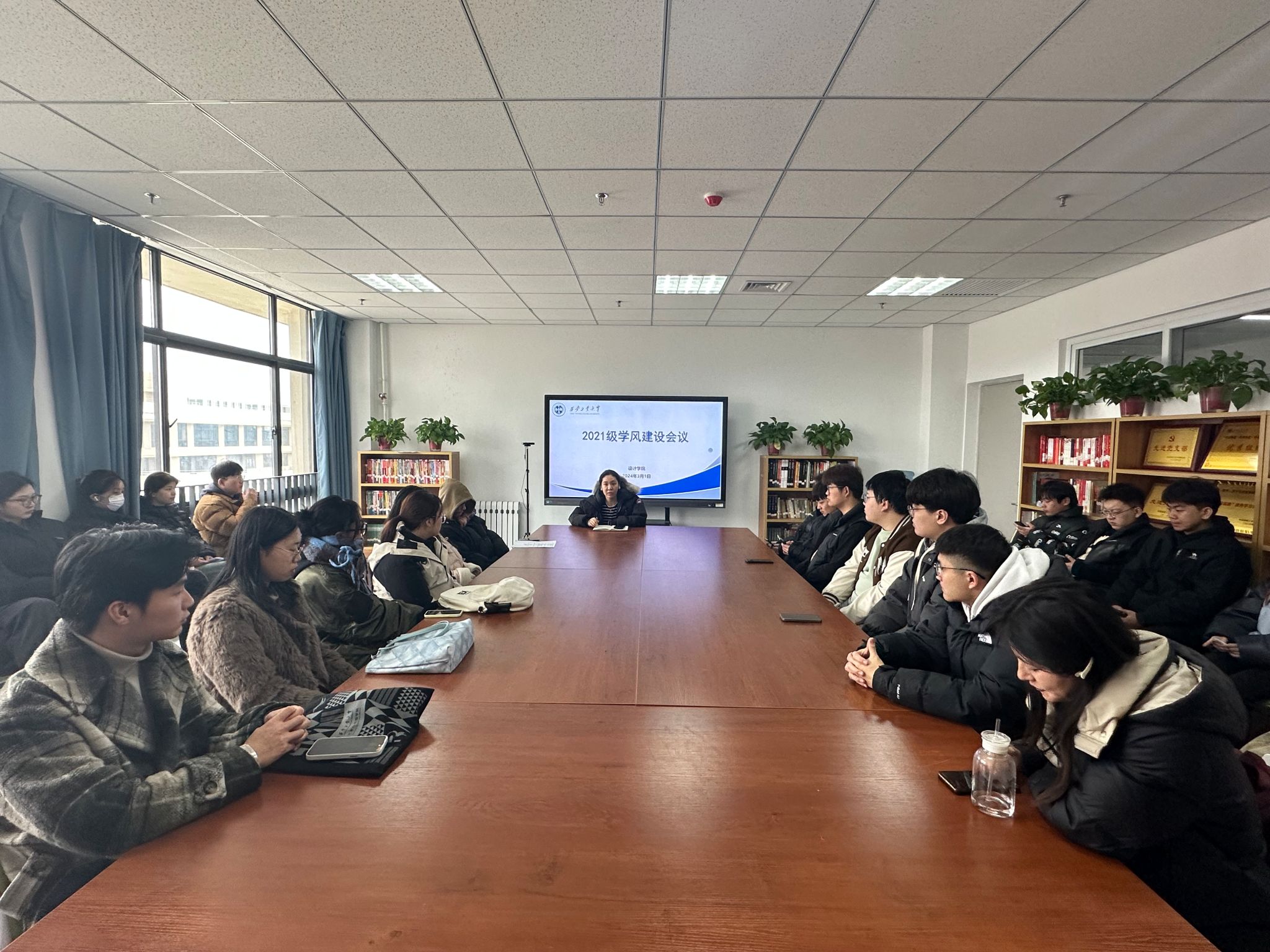 2021级3月1日在教7-617召开学风建设主题班会。辅导员黄怡梅主持会议,2021级班长、团支书和学习委员参加了会议。