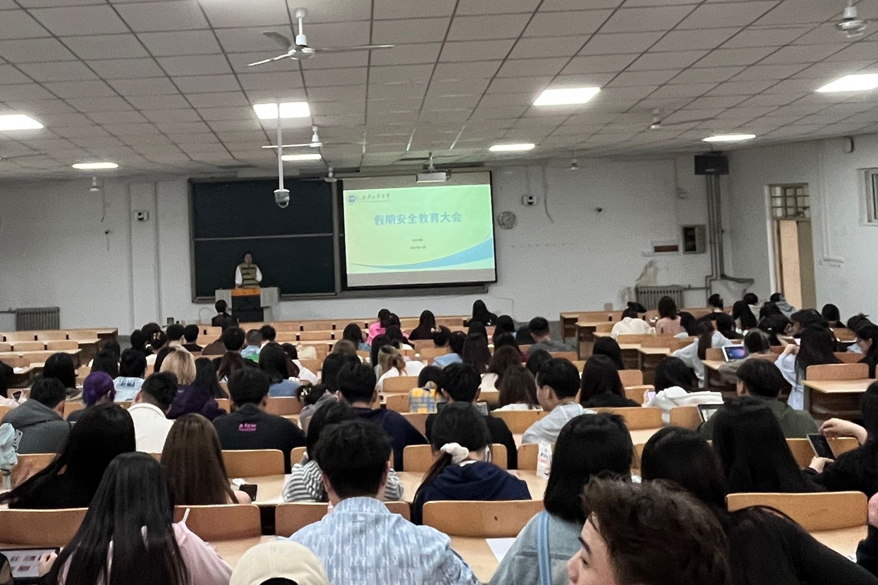 会上,董丹丹从出行安全、饮食安全、消防安全等方面进行安全提醒,如遇雨天,请勿进行爬山等危险出游活动。外出时增强自我防范和保护意识,不在危险地段逗留玩耍,严防危险事故发生。同时,要求同学们加强防盗防骗,保证人身及财产安全。此外,对毕业班同学外出实习期间的安全及离校手续的办理进行了强调。最后,对毕业班技能学分未达标、课程不及格、青年大学习、落实毕业去向等事宜进行了说明和解疑。