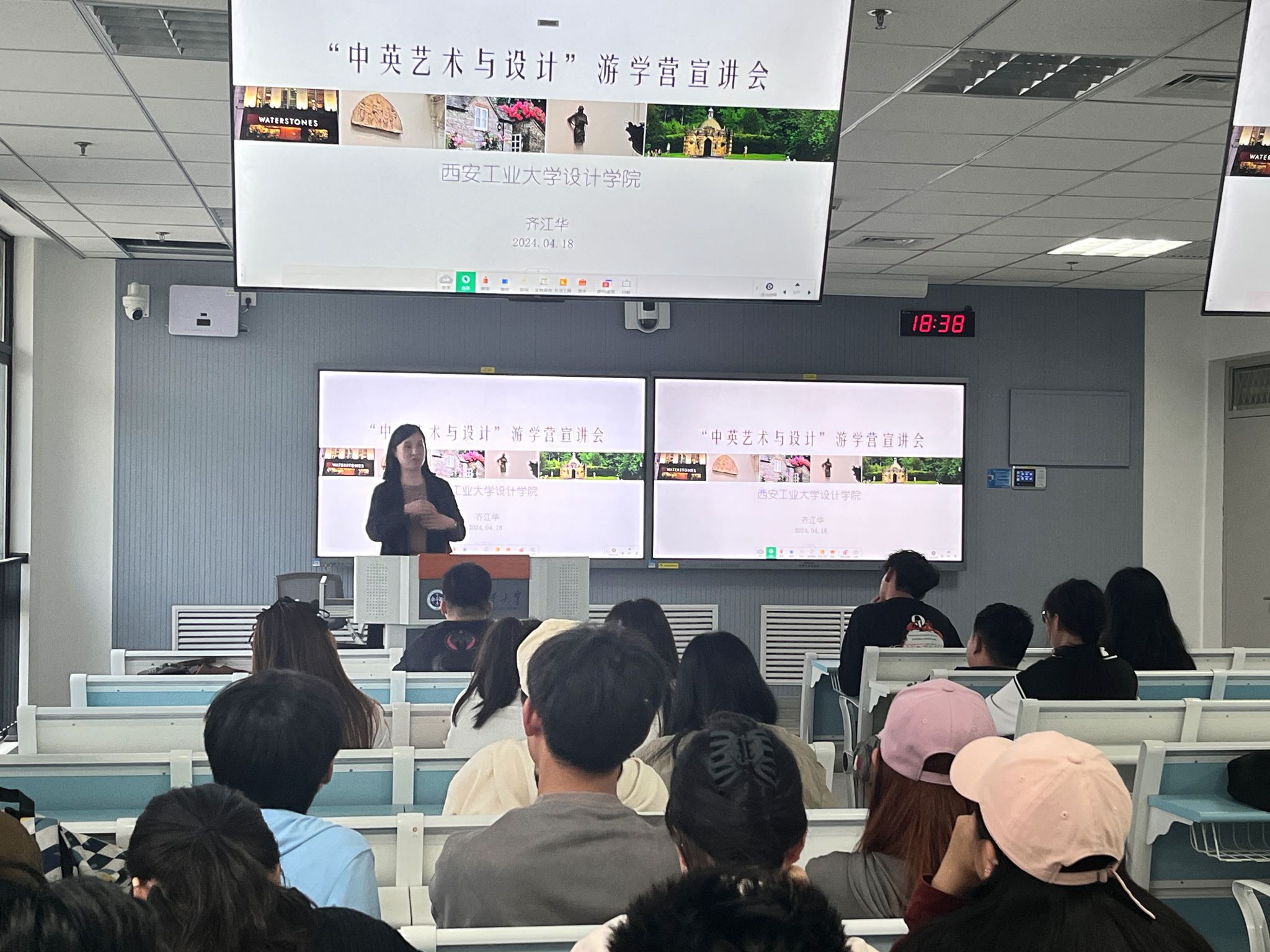 首先,郑瑞涓展示了国际交流与对外合作处往期开展的访学项目相关情况及学生感悟收获分享,随后从为什么要参加国际交流项目、如何获取相关信息、具体申请流程是什么、注意事项等几个方面进行了说明,重点对伦敦艺术大学专业访学项目做了详细介绍。随后,齐江华向学生们详细介绍了伯明翰城市大学中国视觉文化中心主办的“中英艺术与设计”游学营相关信息,并分享了自己在伯明翰访学时的收获和感受,鼓励学生们积极参加国际交流项目,了解不同文化和设计思维,开阔视野,提升自我。最后,进行了现场答疑。