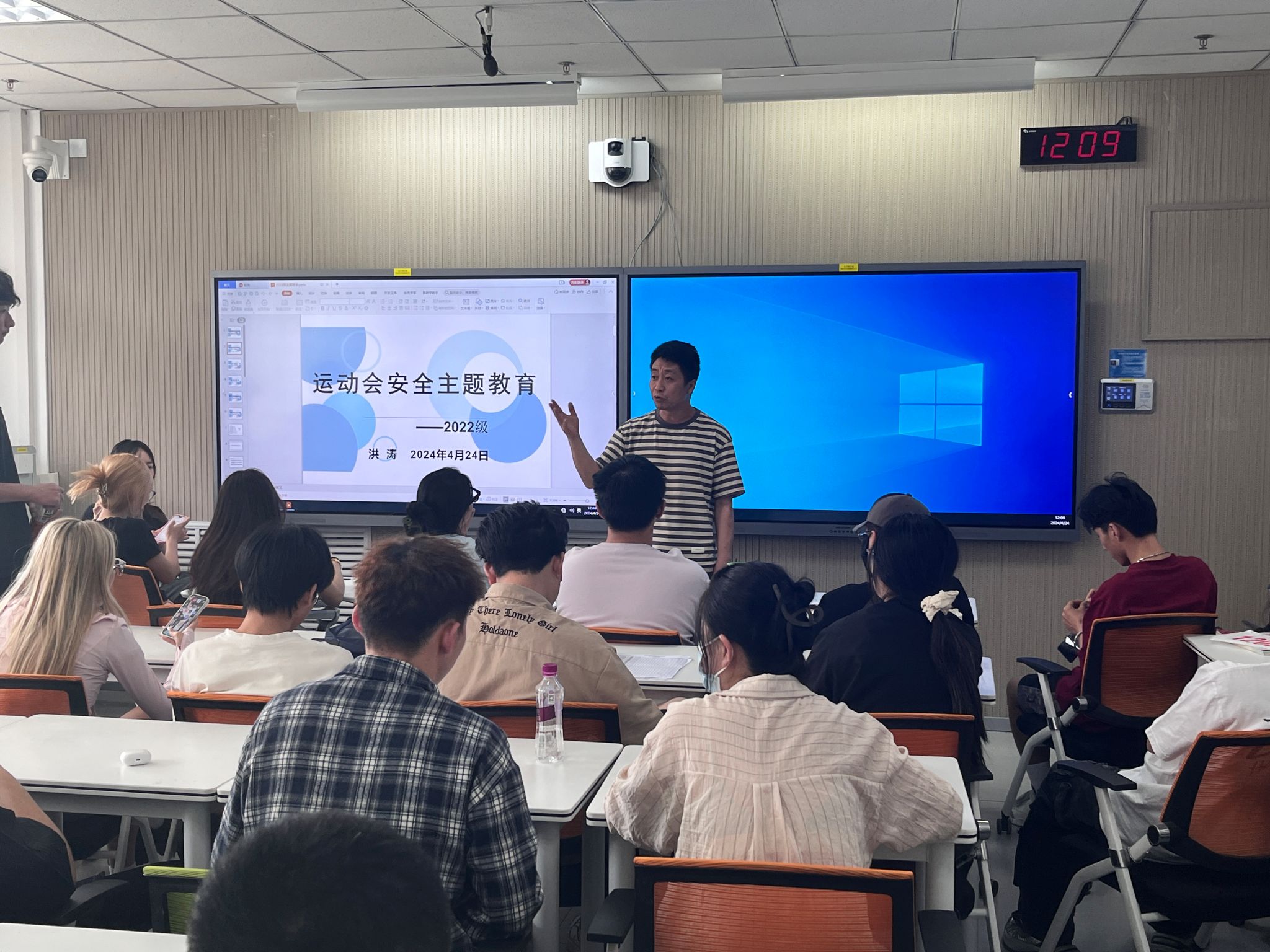 大二、大三学生参加班会。