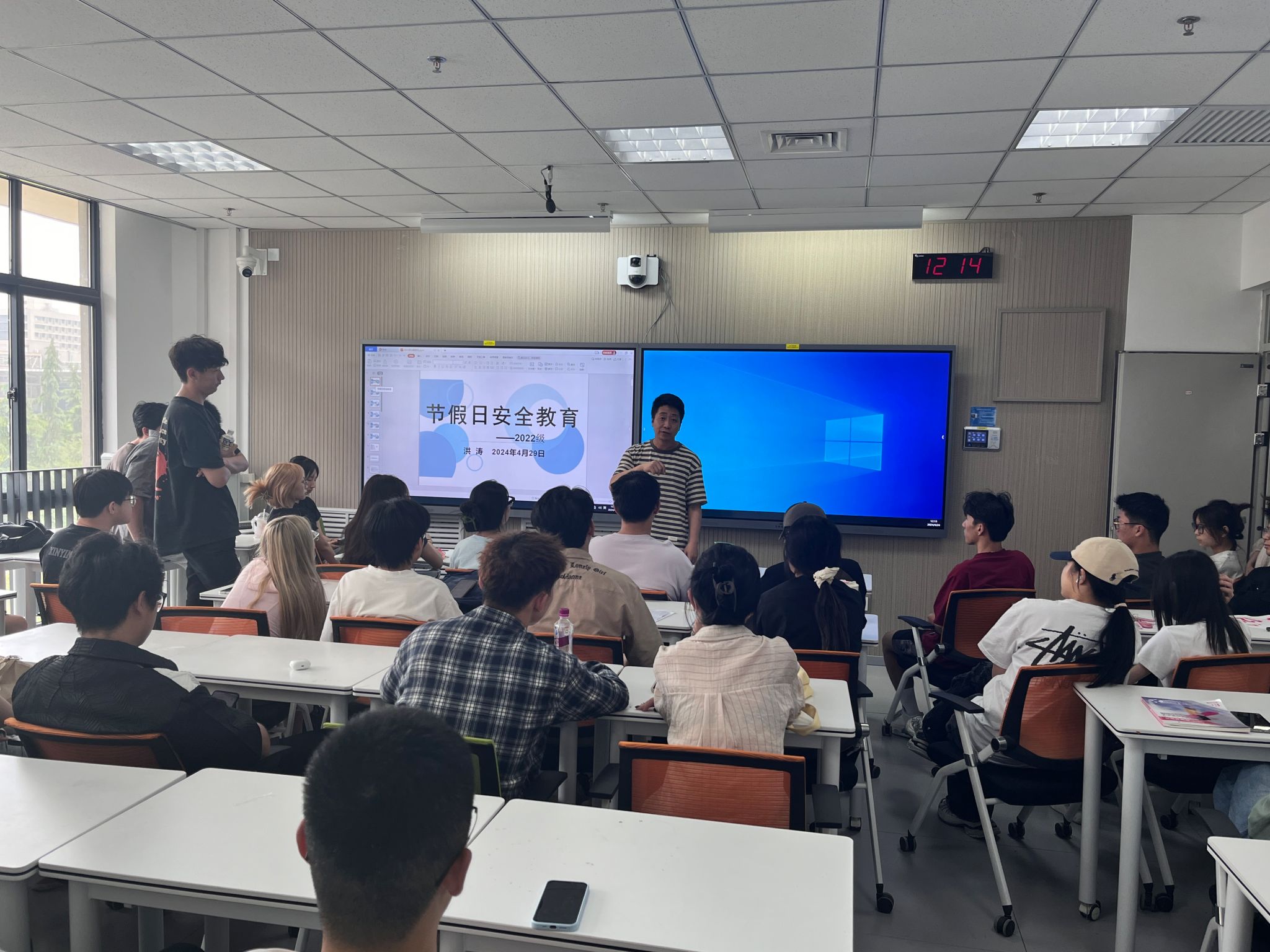 2022级在7-309教室召开节假日安全教育大会,辅导员洪涛主持,2022级全体学生参加。