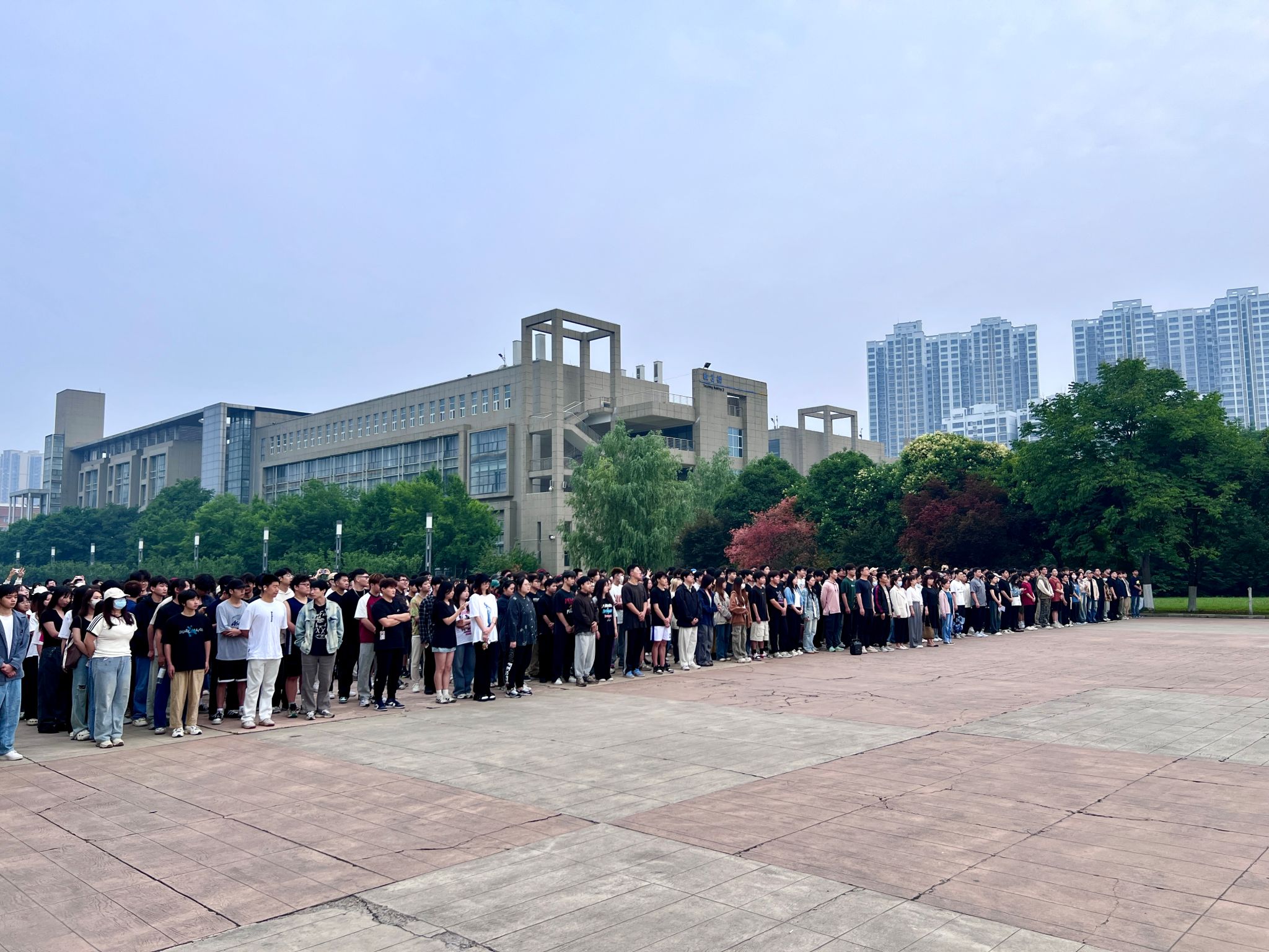 组织全院青年学生观看升旗仪式。院党委副书记周倩、学工办全体辅导员及全院本科生、研究生1200余人参加。