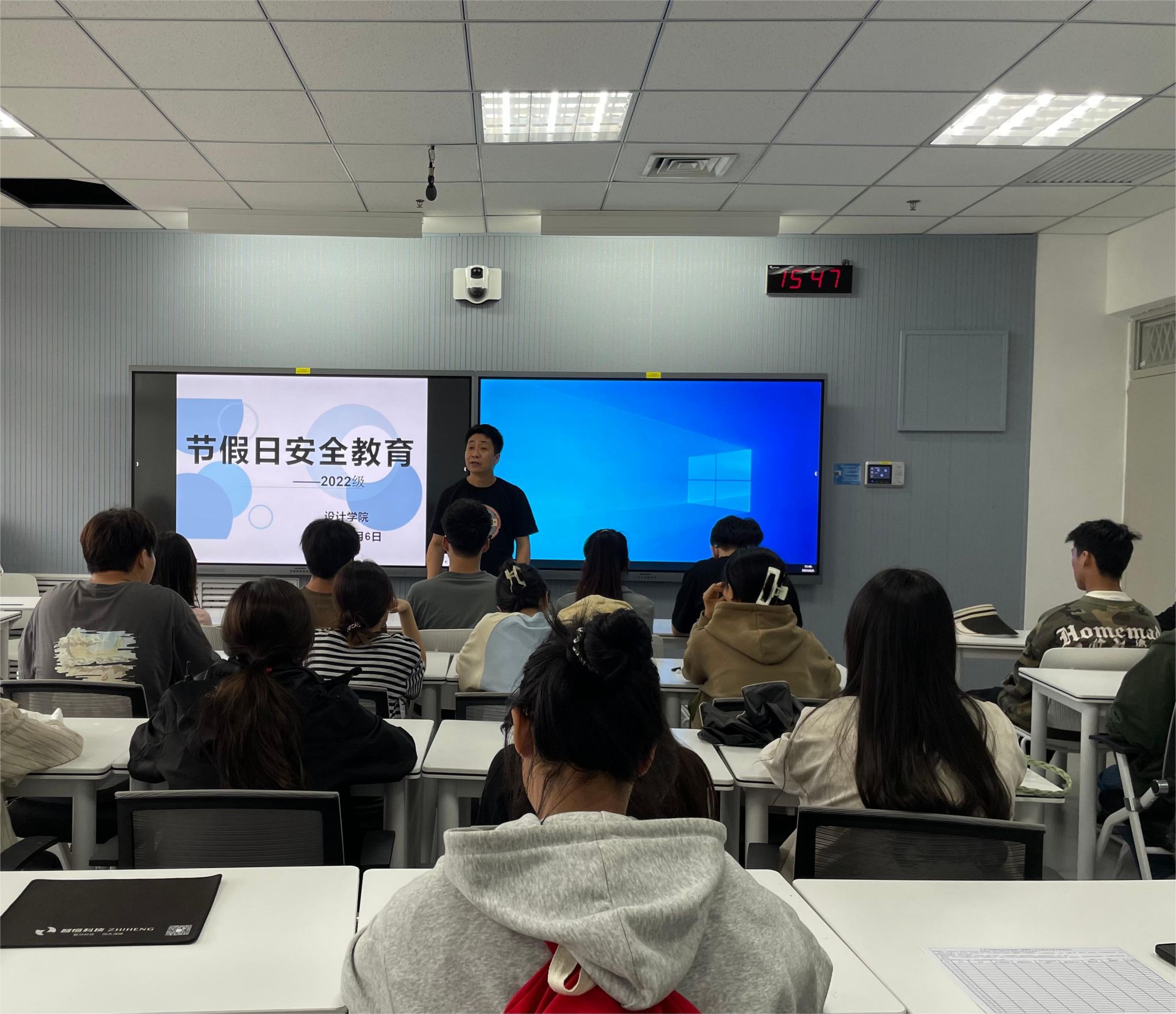 2022级在7-405教室召开端午节安全教育大会,辅导员洪涛主持,2022级全体学生参加。