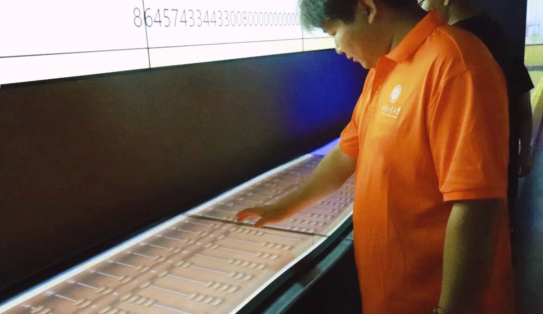 图6为实践队员们参观巨型通顶算珠墙 图 彭敬泽