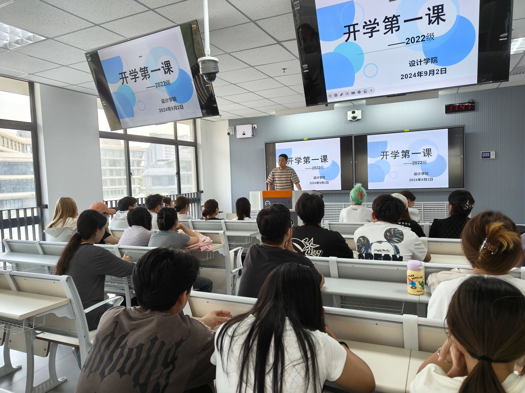 2022级在教7-312开展“开学第一课”活动,2022级辅导员洪涛主讲。